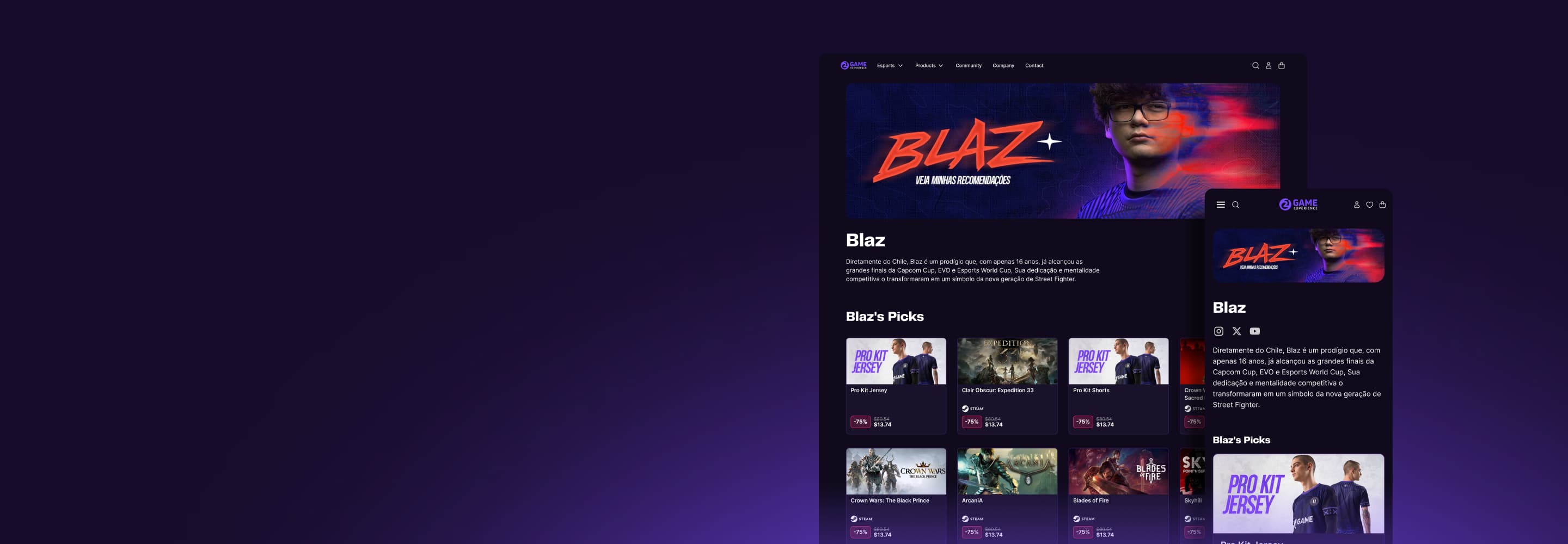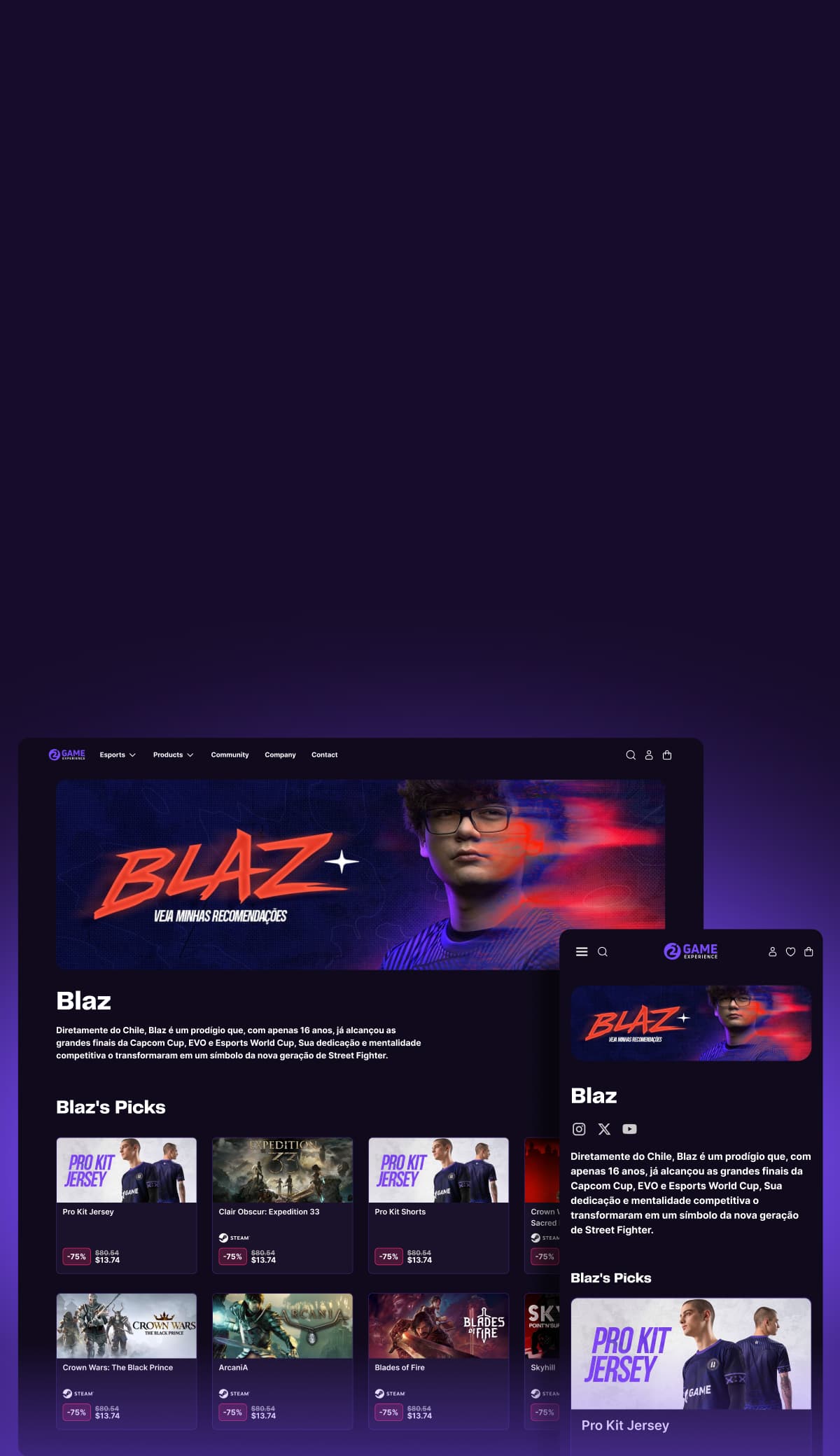 Destaque seus jogos, equipamentos e produtos favoritos — sua loja se atualiza automaticamente conforme você joga e recomenda.